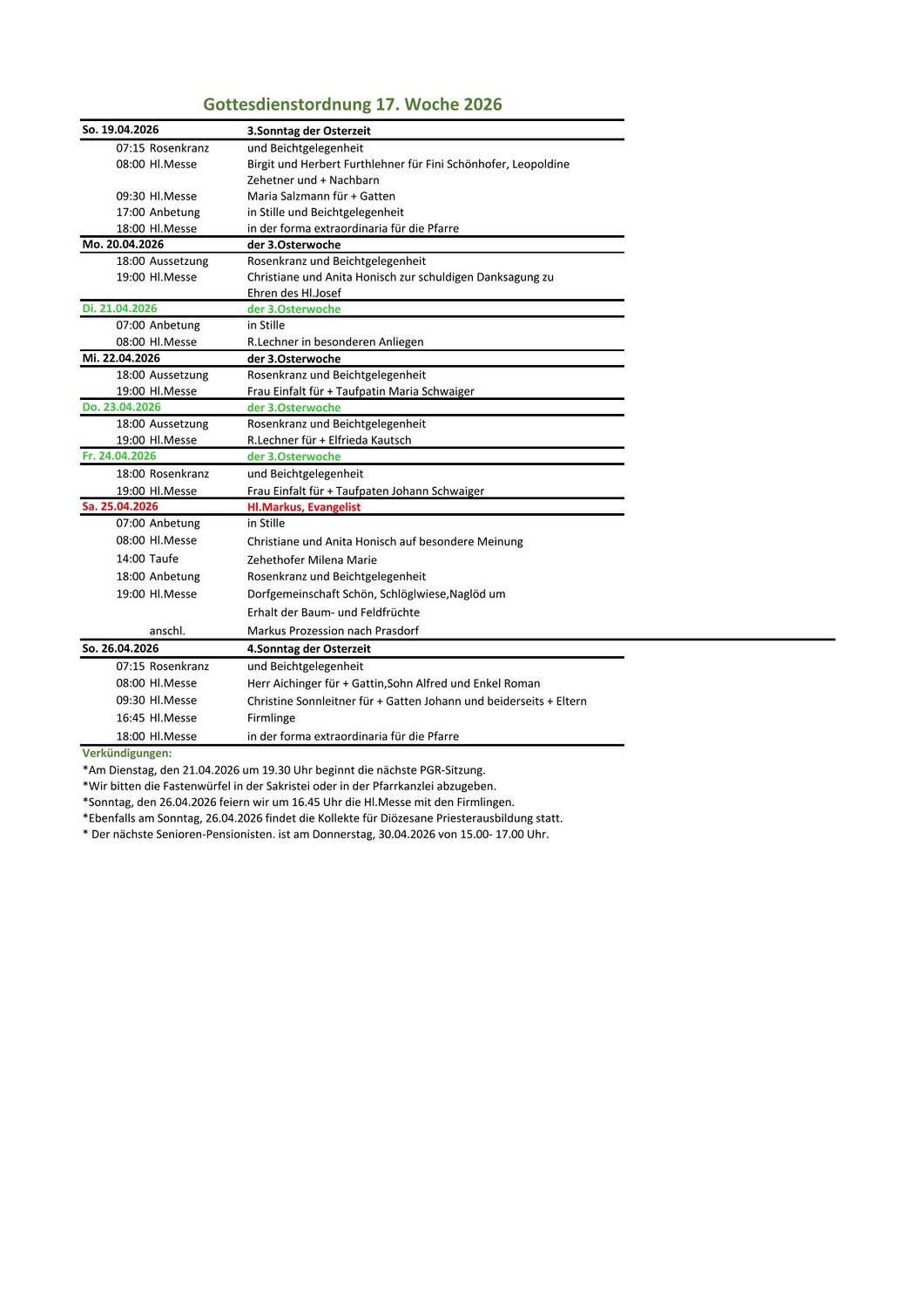 Gottesdienstzeiten