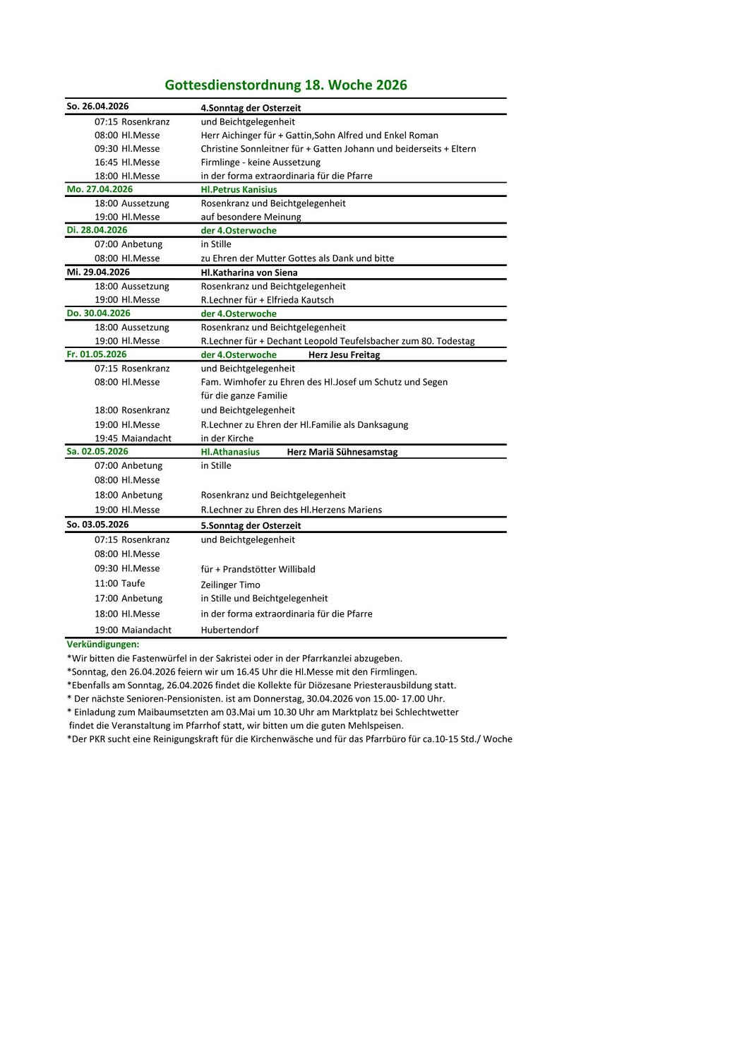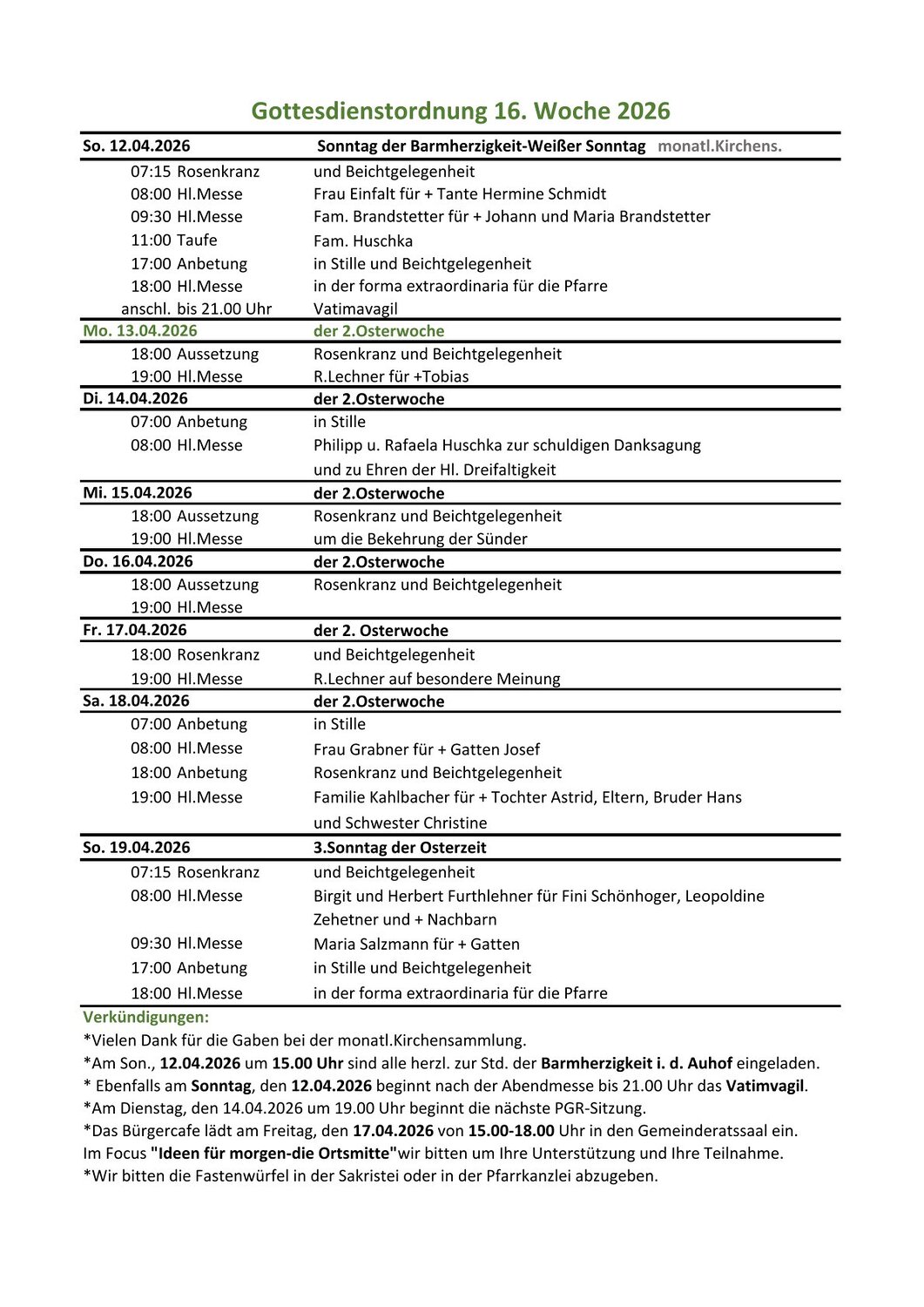 Gottesdienstordnung